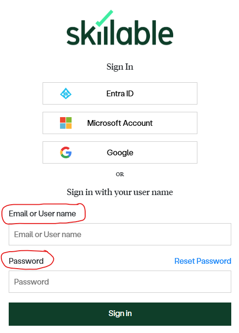 - Sign in with the following information
